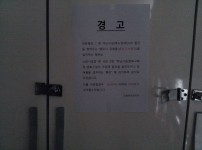 4층복도에 방치된 세탁기에 경고장을 부착했습니다.
