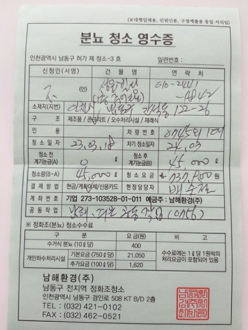 3/18일 저녘에 정화조 청소했습니다. 페이지 정보 작성자 강비오 댓글 0건 조회 2,294회 작성일 23-03-20 13:52 목록 답변 본문 댓글 0 댓글목록 등록된 댓글이 없습니다.